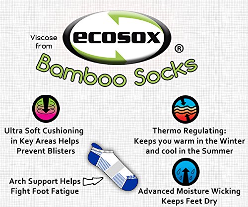 -. Feature : Eco Friendly Bamboo Construction Provides Advanced Moisture Wicking / Performance Arch Support Keeps Socks Snug on Feet and Fights Fatigue / Bamboo Viscose Fibers Help Prevent Foot Odor / Helps to Prevent Blisters / Exclusive Ecosox Construction Helps Regulate Skin Temperature