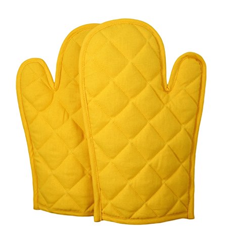 Shalinindia Cotton Oven Mitts Set of 2 Quilted Cooking Gloves,OG02-5203P,Yellow,8 x12 Inch