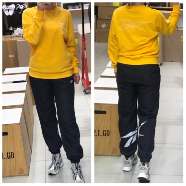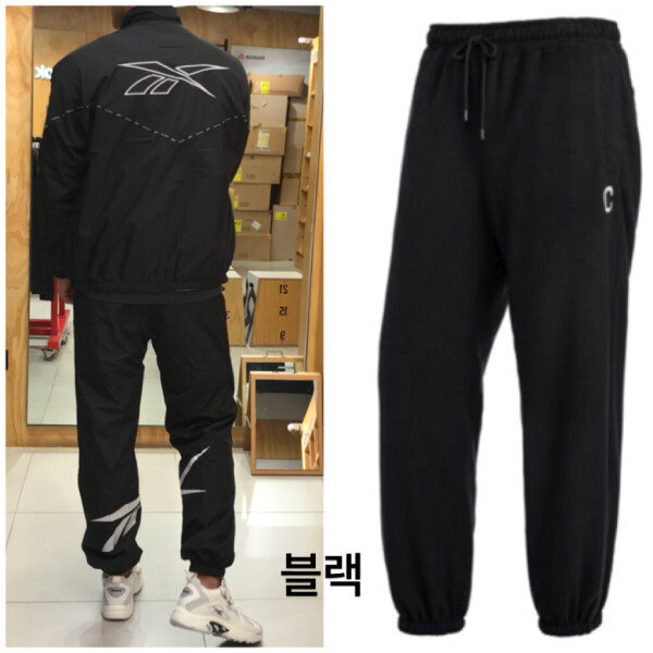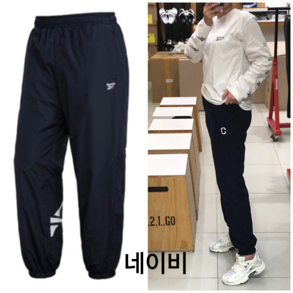 워너원 옹성우, 강다니엘 트레이닝팬츠양면 착용 가능고 바깥쪽은 사각 거리는 우븐소재 안쪽은 부드러운 플리스 소재로 편안한 라이프 스타일을 추구- 리복 커버낫 콜라보제품- 커플룩 추천- 오버 핏으로 정사이즈 또는 한사이즈 작게 착용*남성 181_블랙 L착용 여성 168_네이비 M착용