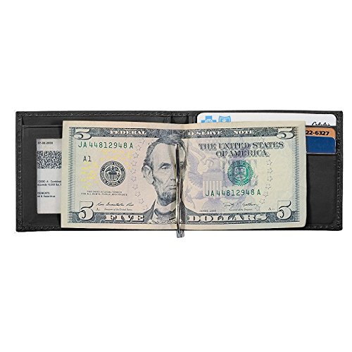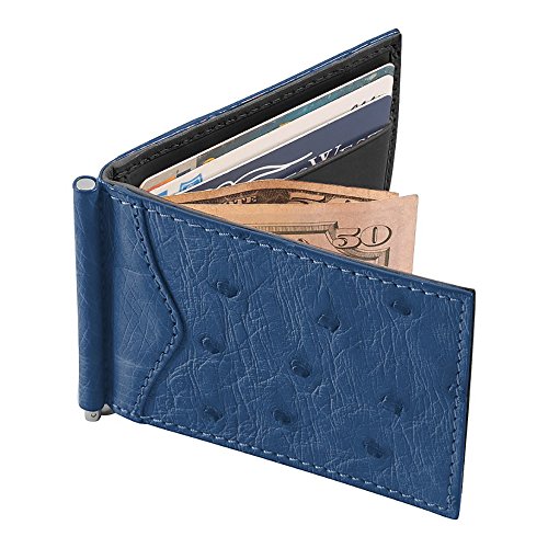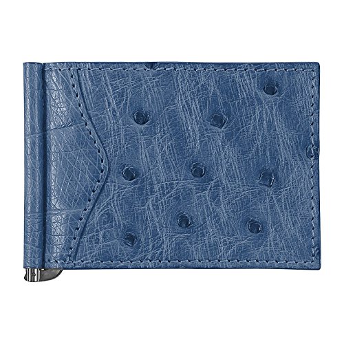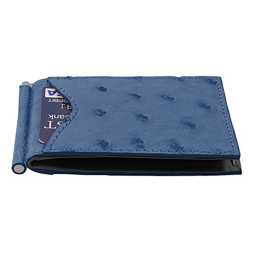 -. Title : Money Clip Wallet, Ostrich Leather, ID Holder, 3 CC Slots, Blue/Black