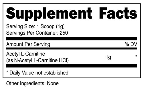 -. Feature : High Quality, Clean and Pure Acetyl L-Carnitine Powder / Lab Tested For Verification And Guaranteed Purity / Promotes Fatty Acid Metabolism - ncrease Fat Loss, Improved Performance, Energizes the Mind / Unique Form of L-Carnitine That Provides Antioxidant Protection Of The Nervous System / Serving Size: 1 Scoop (Included)