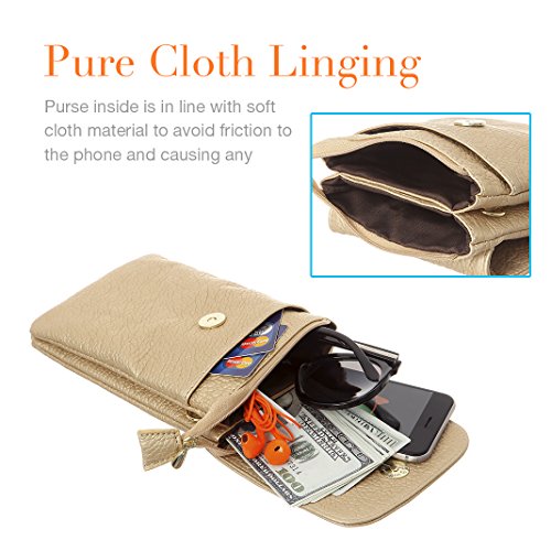 MINICAT Crossbody phone purse design with superior soft PU leather with Lchee texture,which is durable and nice.Purse inside is in lined with fuzz material to avoid friction to the phone and causing any damage