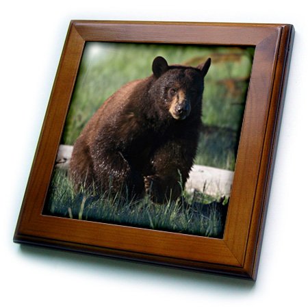 3D Rose Black Bear Boar Color Phase Framed Tile, 8" x 8", Brown
