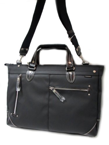 -. Feature : 素材 :コーティングポリ×合皮×牛革 / サイズ:幅42cm×高さ31cm×マチ8cm(広げた状態で13cm) / カラー:ブラック / フロントに2箇所小物収納に便利なファスナーポケットを装備