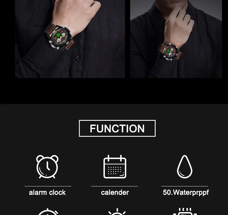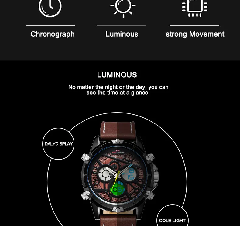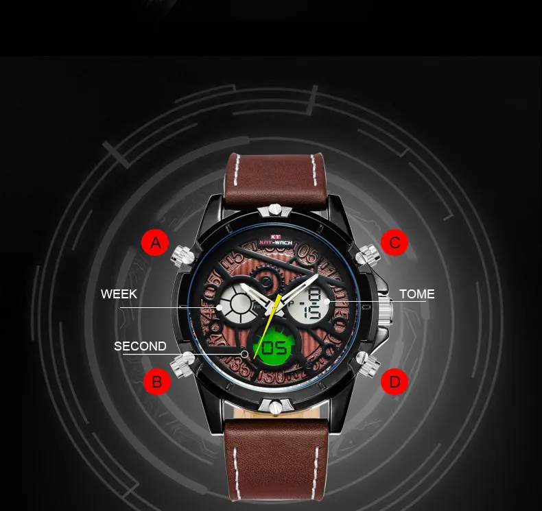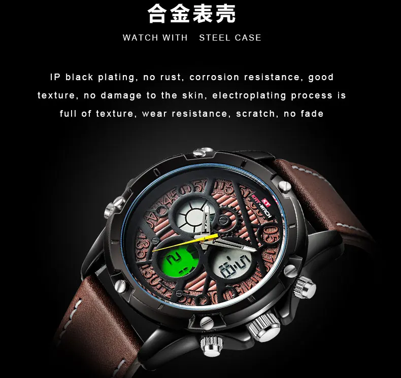 Feature:Water Resistant,LED display,Multiple Time Zone,Back Light,Complete Calendar,Shock Resistant,Chronograph,Week Display,Alarm