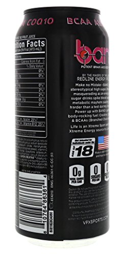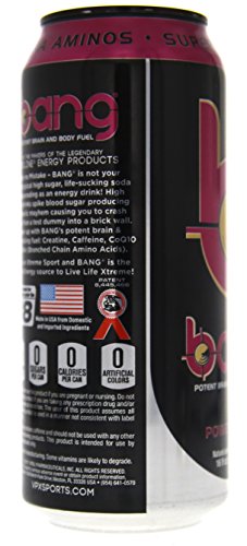 Studio : VPX Publisher : VPX Binding : Health and Beauty Product Description By the Makers of the LegendaryRedline Energy Products Make no mistake - BANG is not your stereotypical high sugar, life-sucking soda masquerading as an energy drink! High sugar drinks spike blood sugar producing metaboic mayhem causing you to crash harder than a test dummy into a brick wall. Power up with BAN G's potent brain body-rocking fuel: Creatine, Caffeine, CoQ10 BCAAs (Branched Chain Amino Acids). Life is an Xtreme Sport and BANG is the Xtreme Energy source to Live Life Xtreme! 0