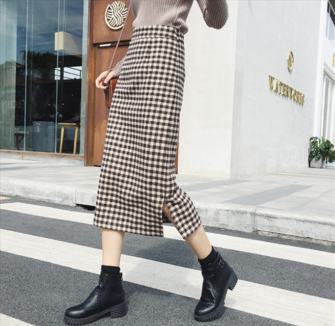 シックなチェック柄が大人クールなロングスカート