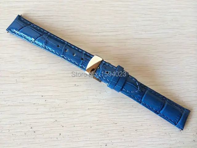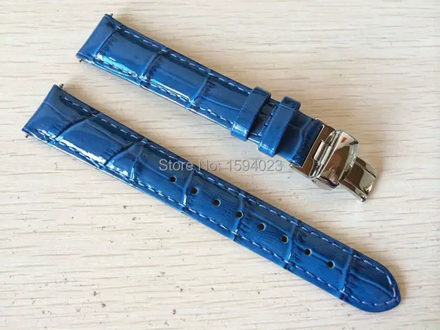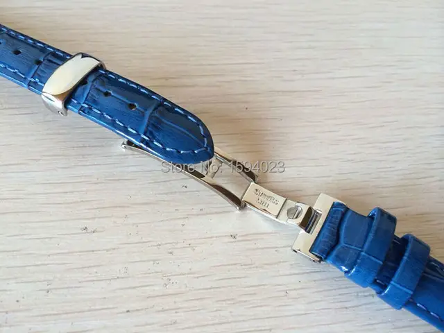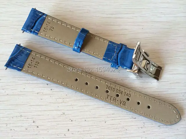 | [해외] 16 미리메터 (Buckle14mm) T055217 높은 품질 실버 나비 버클 + 블루 정품 가죽 시계 밴드 스트랩 |