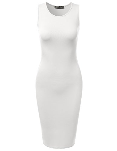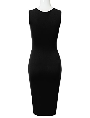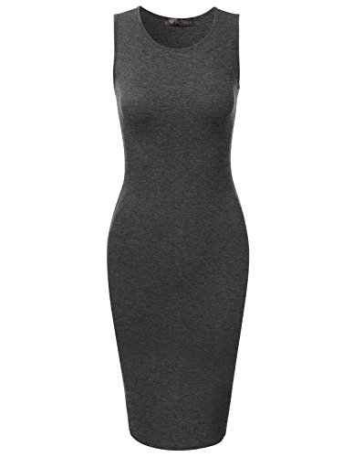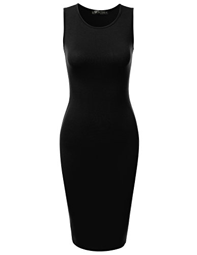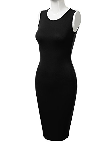 A basic sleeveless dress featuring round neckline, midi length, and slim fit bodyline.