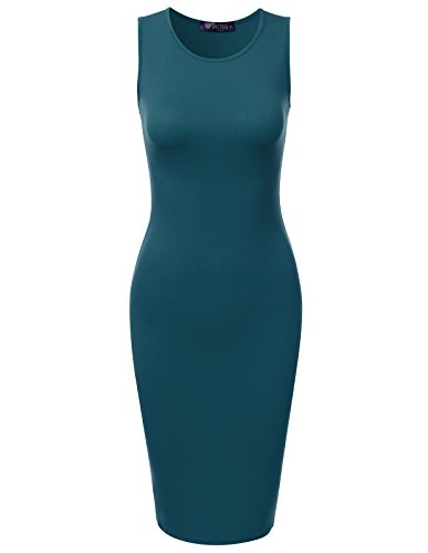 Women's basic fitted solid sleeveless dress