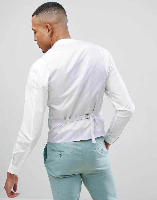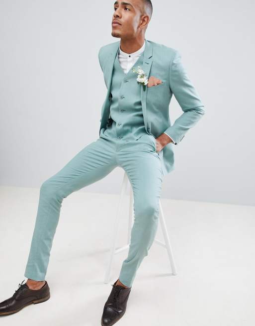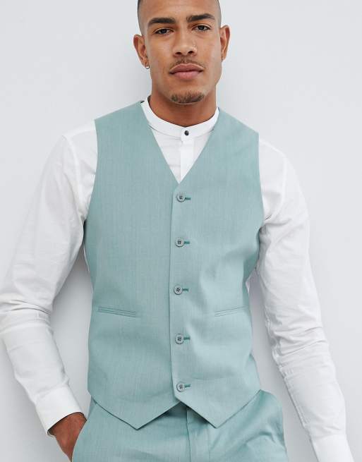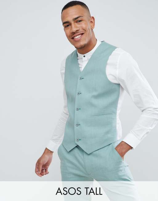 ASOS DESIGN Tall Wedding Super Skinny Suit Vest In Sage Green Linen