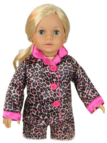 -. Feature : 18 Inch Doll PJ Set, 3 Pc. Set Made with High Quality Fabrics/Materials, Designer Doll Clothes & Affordably P.R.Iced!Inch Doll Clothing Set Made with High Quality Fabrics/Materials, Designer Doll Clothes & Affordably P.R.Iced! / Hot Pink & Tan Animal P.R.Int Satin Pajama Shirt With Hot Pink Collar and Cuffs. Hot Pink Piping and Buttons. / Matching Elastic Waist Pants with Hot Pink Piping and Pant Cuffs. / Matching Slippers with Elastic Strap, Doll Clothing for 18 Inch Dolls / Made by Sophia's, Leading Doll Clothes & Doll Shoe & Accessory Maker. Not affiliated with American Girl®, Reg. Trademark of American Girl, LLC.