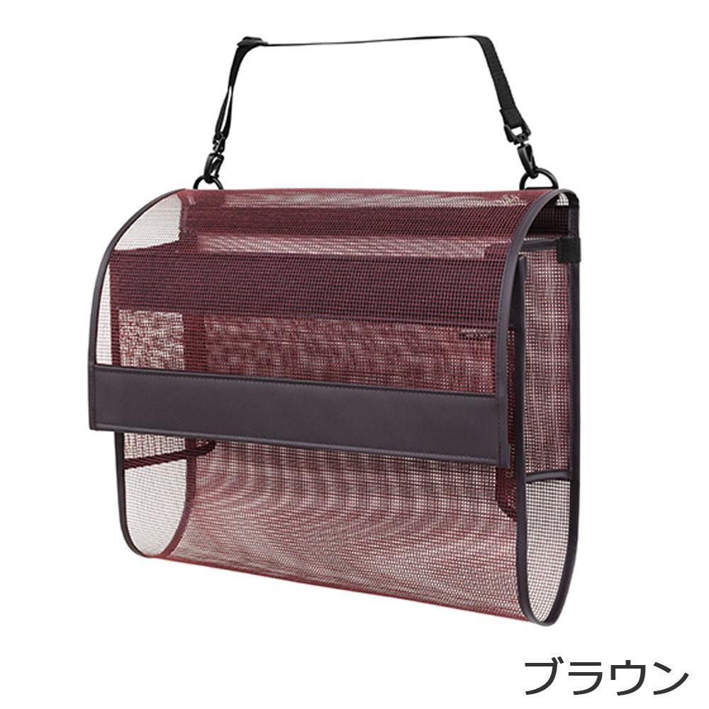 様々な場所で使いやすいイスの背もたれに取り付けるタイプの荷物入れ。長さ調節ができるベルトは、ねじれ防止用に360度回転するフック付きです。 |