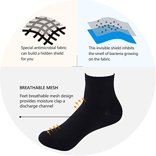 -. Binding : Apparel -. Brand : Houmous -. Department : mens -. Feature : 78% Cotton, 17% Nylon,5% Spandex / Antibacterial silver ions in the yarn to keep feet clean, dry, and odor-free / Super soft breathable cotton for all day wear, extra reinforced toe, heel, and heel pocket for more durability / Versatile usage as either a casual sock or athletic & running purposes / Spandex knitted throughout for a streamlined performance fit -. PackageQuantity : 6 -. ProductGroup : Apparel -. ProductTypeName : SOCKSHOSIERY -. Title : Houmous Sliver Antimicrobial Women & Men Ankle Breathable Socks 6 Pack