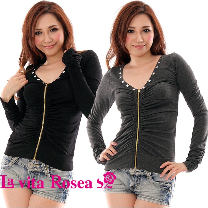 スタッズフロントジップトップス(NP) 大きいサイズ 春 セクシー レディース ギャル服 ギャル 大人 13号 15号 17号 19号 LL 2L 3L 4L 5L 6L 6L