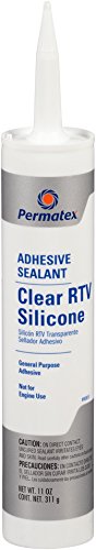 Permatex Clear RTV Silicone Adhesive Sealant is a general-purpose, black RTV indoor/outdoor sealant that bonds, seals, repairs, mends and secures glass, metal, plastics, fabric, vinyl, weather-stripping and vinyl tops. It protects and repairs electrical wiring and may be applied to horizontal or vertical surfaces. With a temperature range of -75 degrees Fahrenheit to 450 degrees Fahrenheit, this sealant resists oil, water, weather, vibration, and grease. From a trusted line of Permatex sealants for virtually any automotive sealing application.Feature