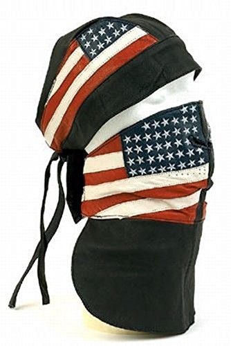 -. Title : Leather Skull Cap And Face Mask With USA American Flag