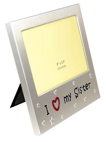 -. Binding : Kitchen -. Brand : benerini -. Color : Silver -. EAN : 5055333203982 -. Feature : I Love My Sister ' - Photo Picture Frame Gift - 5 x 3.5 " - Brushed Aluminum Satin Silver color. A really beautiful superior quality frame made of Aluminum and finished in a brushed satin silver color ideal gift ideas for Sisters. / Will take a 5 x 3.5 " (13 x 9 cm) photo or picture of that special little or big sister and her brother and the back of the frame just slides off for simple photo insertion. / The lettering and the red heart on the picture frame are embedded giving the frame a high quality finish. / The photograph frame is both free standing & has a hook on the reverse so can also be wall mounted making it very versatile. / The back of the frame is covered in a black velvet effect material adding to the overall quality feel of the frame and comes boxed - ready for wrapping. An ideal present for Sister. -. Label : benerini -. Manufacturer : benerini -. MPN : B005980R5Q -. PartNumber : B005980R5Q -. ProductGroup : Home -. ProductTypeName : HOME -. Publisher : benerini -. Size : 5 x 3.5 -. Studio : benerini -. Title : I Love My Sister ' - Expressions Photo Picture Frame Gift - 5 x 3.5 " - Brushed Aluminium Satin Silver Color