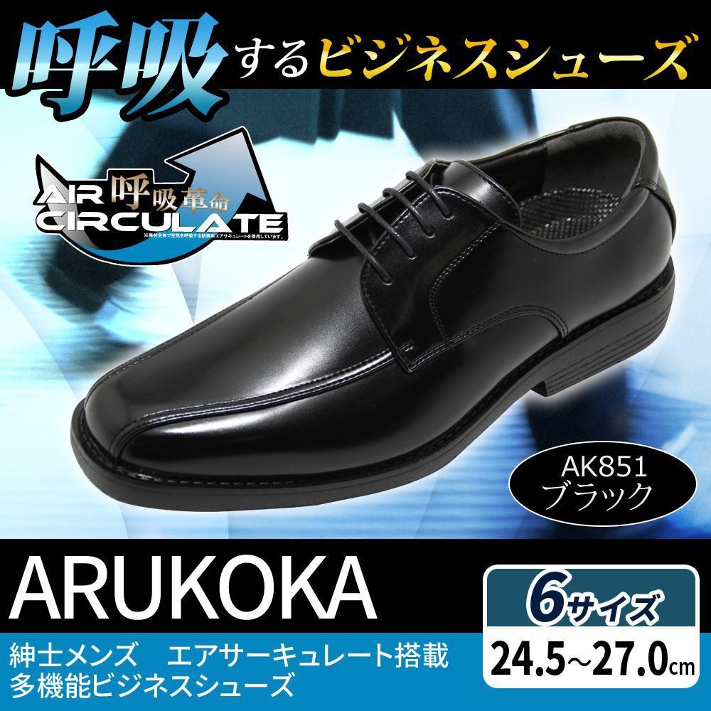 | 素材内部に施された通気構造により、靴内に滞った空気を外へ逃がし循環させる機能を持った新素材・エアサーキュレートを使用したビジネスシューズ。ムレにくく疲れにくい設計にするため、通気孔付きの靴底や衝撃吸収クッションを搭載!! |