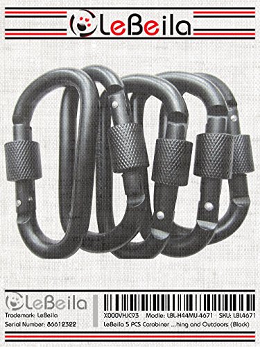 -. Title : LeBeila 5 PCS Carabiner Climbing D Ring Keychain with Clip Durable Heavy Duty Aluminum Screw Locking Hooks for Hiking, Fishing and Outdoors
