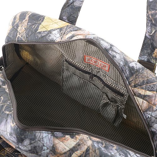-. Binding : Baby Product -. EAN : 0617037675585 -. Feature : Zipper Closure, Open & Zippered Pockets Inside / Metal Feet on the Bottom / Gingham Lining / Front Zipper Pocket / Can be used as a gym bag or a small overnighter. This trendy bag is lightweight and durable. / Length/Height/Width : 20.0" / 13.0" / 9.0" -. Label : J -. Manufacturer : J -. ProductGroup : Baby Product -. ProductTypeName : BABY_PRODUCT -. Publisher : J -. Studio : J -. Title : Quilted Camo Overnight Duffle Bag (BR) -. UPC : 617037675585