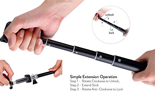 EASE OF USE - Bluetooth Selfie Stick, single button shutter release conveniently on the handle.
