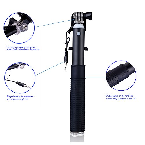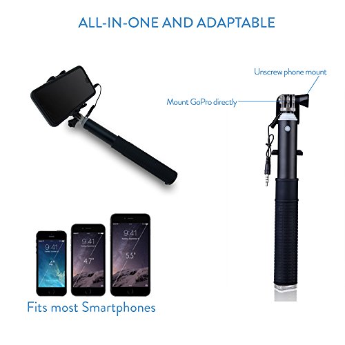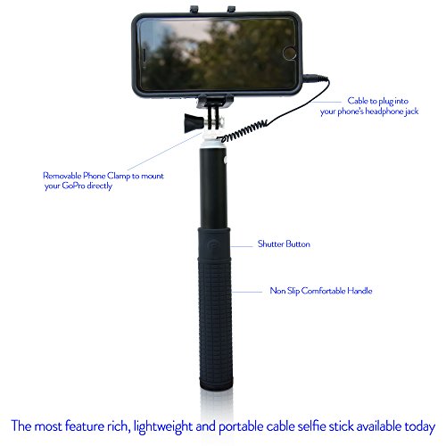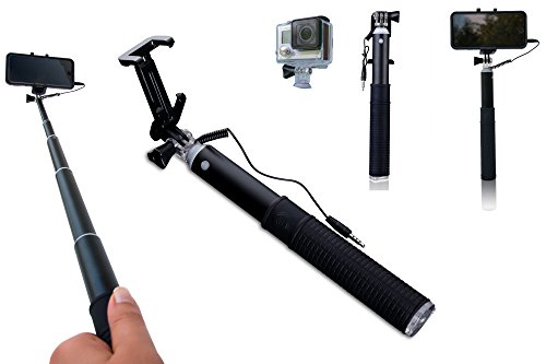 Selfie Stick By Zivachi Premium Quality Aluminium Monopod for all iPhones, Android Phones, and GoPro(Mount Only) Wired Version - Black