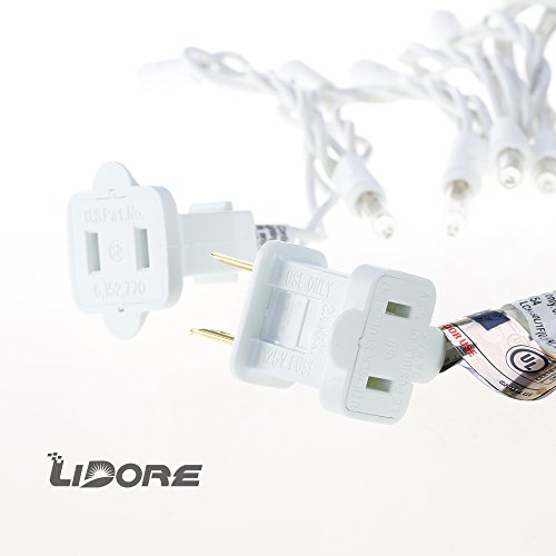 Safety fuse construction. Besides each string lights has 1 spare fuse and 2 spare bulb. In addition to super bright clear mini bulbs with white wire, this light is a series-connected lighting string. End to End connection. Three sets of the same lights can be connected together.