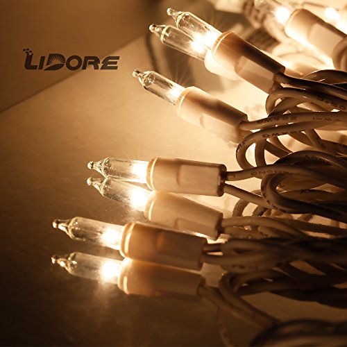 LIDORE 100 Counts Super Bright Clear Mini Christmas tree Lights. White Wire Best Gift for Decoration. End to End Connection. Set of 100