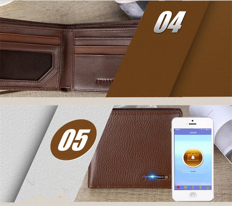スマート財布本革でアラームgpsマップ、bluetoothアラーム男性財布