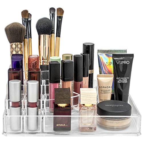 BEAUTIFULLY DISPLAY & ORGANIZE – Makeup and brushes all in one place– Organizer is perfect for storing lipsticks, foundations, bronzers, blushes, eye shadows, primers, powders, perfumes, and much more – Can also be used to store jewelry and personal accessories