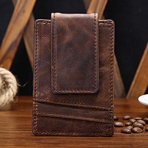 Product Description Material: 100% Cow Leather Internal structure : card bit * 6,side coin pocket * 1,magnetic buckle banknote clip * 1 Design is simple and convenient, exquisite workmanship, highlight the handsome style. Unique cowhide material.Matte feel.Best gift for man. The surface will become more bright with the use of time.
