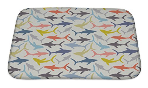 Gear New No Slip Microfiber Memory Foam Pattern of Hand Drawn Sharks Silhouettes Bath Rug Mat, 24" X 17"