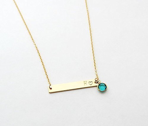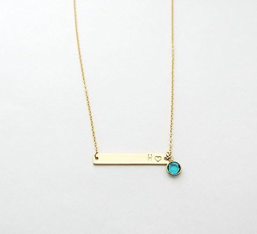 -. Title : Personalized Name Plate Bar With Birthstone Necklace, Dainty Necklace, Bridesmaid Necklace