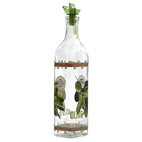 -. Binding : Kitchen -. Brand : Grant Howard -. Color : Multicolored -. EAN : 0023055507850 -. Feature : Cruet holds 16 ounces / Cute olive theme around the bottle / Pour spout helps prevent over pouring and messy spills / Recommended for infused oil and vinegar / Pourer is included with the cruet -. Label : Grant Howard -. Manufacturer : Grant Howard -. Model : 50785 -. MPN : 589297-50785 -. PackageQuantity : 1 -. PartNumber : 589297-50785 -. ProductGroup : Kitchen -. ProductTypeName : KITCHEN -. Publisher : Grant Howard -. Size : 16 oz -. Studio : Grant Howard -. Title : Grant Howard Olive Oil & Vinegar Glass Cruet with Ergo Pourer, 16 oz, Multicolored -. UPC : 023055507850