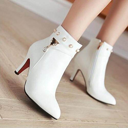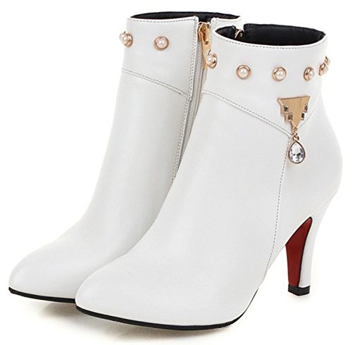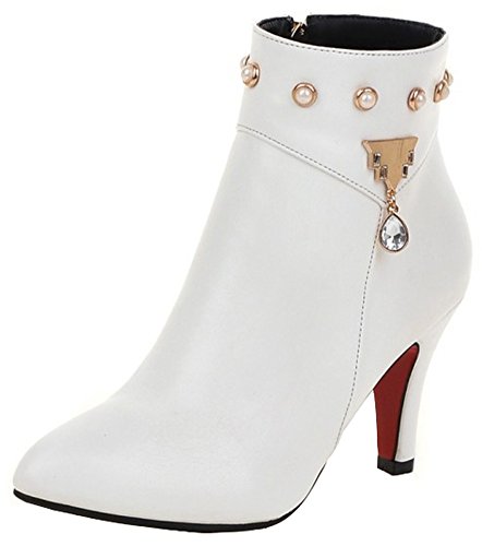 (Mofri)/Women's/Boots/DIRECT FROM USA/Mofri Women's Elegant Studded Rhinestone Pendant Side Zipper Ankle Booties Pointed Toe High Sti...