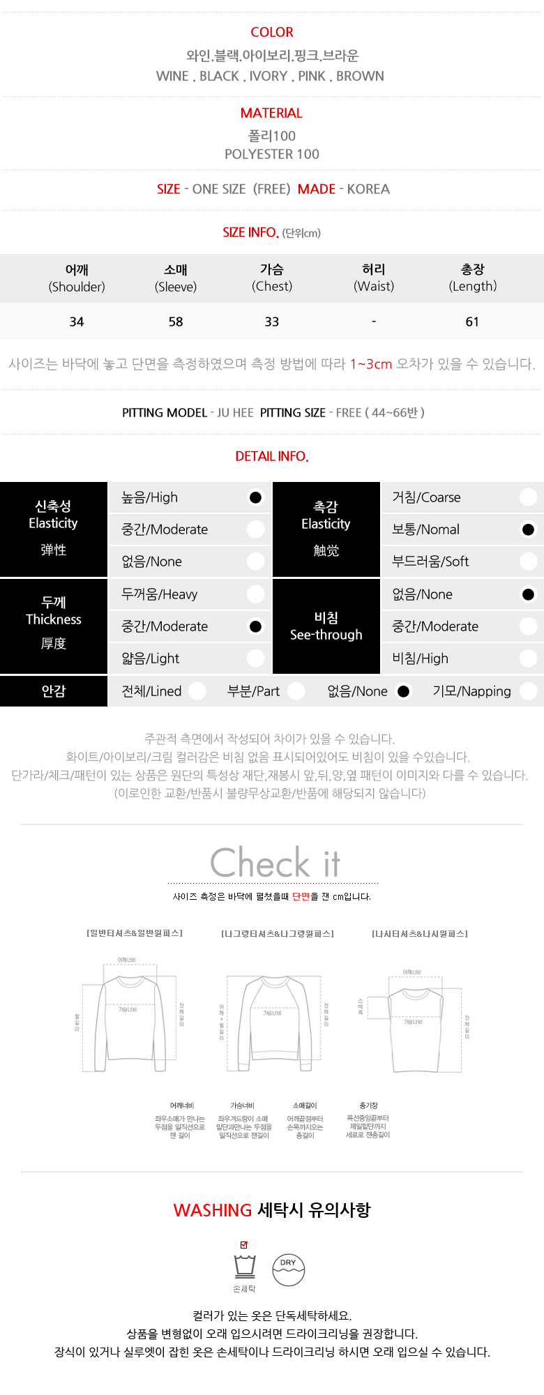 ![]() MD COMMENT 컬러별로 소장가치 높은 양V 티셔츠를 소개할게요 슬림한 핏팅감에 착용시 바디를 더욱 글래머러스하게 연출해 주며 V 네크라인이 넥과 쇄골을 섹시하고 여리하게 연출해 주어요 부드러운 터칭감으로 편안한 착용감을 자랑하며 딱히 유행타지 않는 깔끔한 디자인으로 매년 활용하기 좋은 아이템이에요 적당한 기장감에 하의 인 앤 아웃이 예쁘며 다양한 하의와 스타일링 가능해요 DETAIL TIP 폴리100% 소재로 제작되었어요 신축성이 아주 뛰어나 활동량이 많은날에도 함께 해 보실수 있구요 비침없는 제품이나 니트 특성상 늘어짐에 따라 약간의 비침이 있을 수 있으니 이 점 참고하시어 신중한 구매 부탁드릴께요 SIZE TIP 원 사이즈 제품이며 44~66반 사이즈까지 프리하게 착용할 수 있는 아이템이에요 착용컬러 : 핑크 착용모델 : Ju Hee ![]() ![]() ![]() ![]() ![]() ![]() ![]() ![]() ![]() ![]() ![]() ![]() ![]() ![]() ![]() ![]() ![]() ![]() ![]() ![]() ![]() ![]() |