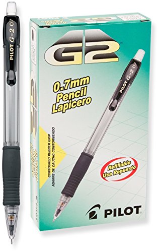 Pilot G2 Mechanical Pencils feature a contoured rubber grip for optimum writing comfort. Perfect for professionals, students or anyone else who does a lot of writing with pencils; these are an excellent choice from the popular G2 line of writing instruments. Each pencil in this 12-pack has a strong 0.7mm HB lead that is also refillable. A quality mechanical pencil - pick one up today!