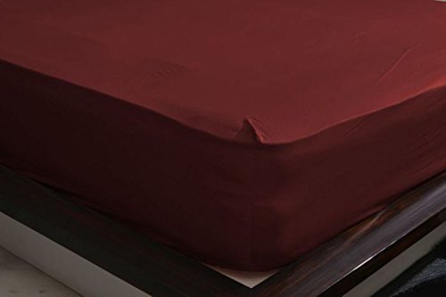 -. Title : 400 Thread Count 1 Piece Fitted Sheet (Elastic All Around) - Queen Burgandy Solid 100% Egyptian Cotton 15" Deep Pocket