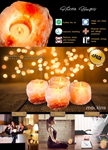 It is said that the negative salt ions released by the salt when lit can boost blood flow, improve sleep, increase levels of serotonin in the brain and improve the overall quality of the air you breathe. Mockins Himalayan Salt tea light holders will fit perfectly anywhere you wish to put them. The warm glow given off by the Salt Crystals will provide your home or work place with a soothing and tranquil environment enjoyed by everyone.