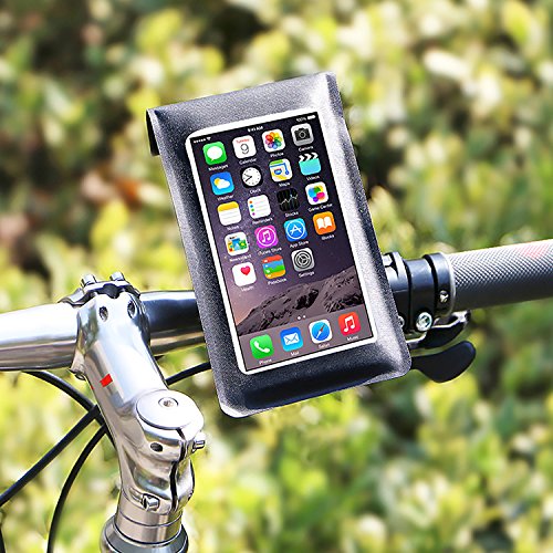 NOTICE: Not designed to be submersed in water! Handlebar mobile phone bag for a wonderful cycling experience; Made of waterproof PVC, no zipper ,envelope sealed typr; High sensitivity touch screen with transparent part in back for camera; 360 degree rotation and adjustable angle of elevation; Suitable for electric bicycle, mountain bicycle ,road bike.