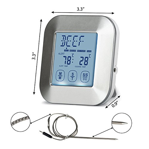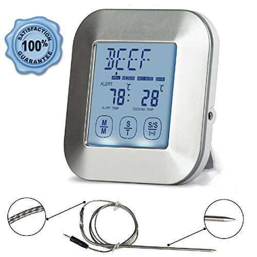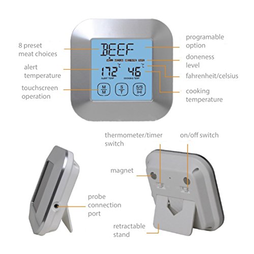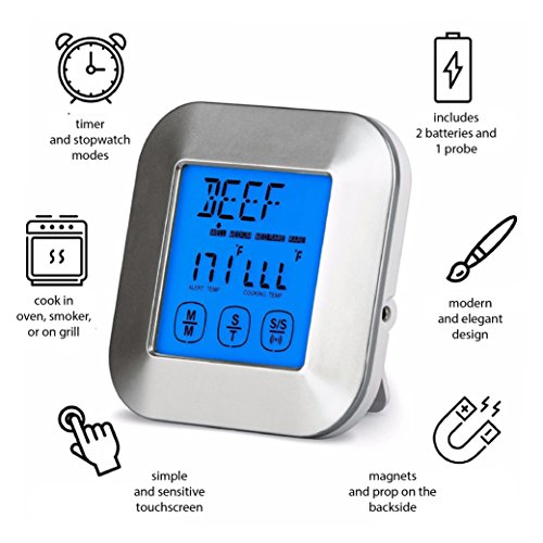 Digital Cooking Thermometer; Food Grade Stainless Steel Single Probe; Touchscreen, Timer and Magnet; Best for Meat, Poultry or Fish; Roast, Smoke or Bake; Barbecue Pit, Steak Grill or Kitchen Oven