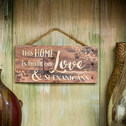 This Home is Built on Love Distressed Look 5 x 10 Wood Plank Design Hanging Sign