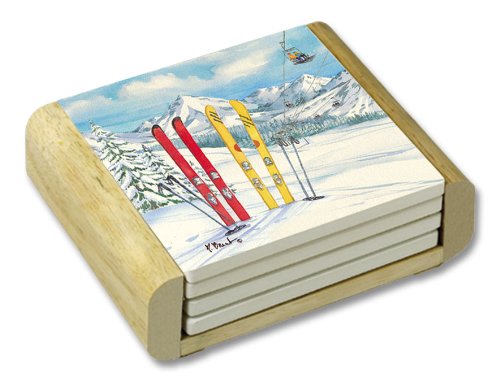 CounterArt Ski Lodge Absorbent Coasters in Wooden Holder, Set of 4