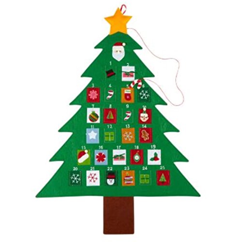 Large Hanging 25 Day Christmas Tree Advent Calender with Star 36" X 25" and Candy Cane String