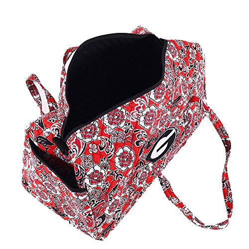 -. Feature : Ideal for carrying all your everyday essentials and more / Features a large zippered main compartment, side exterior pocket / Two handle straps and a removable padded shoulder strap / Water resistant bottom / Heavy quilted cotton finish