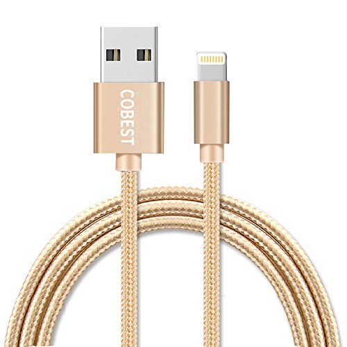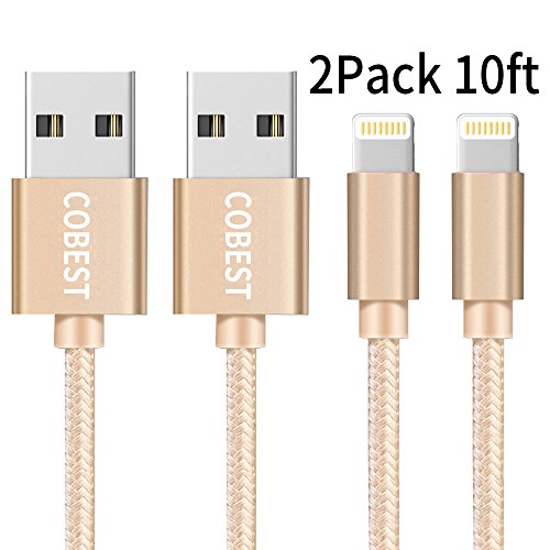 iPhone Cable,COBEST 2 Pack 10ft Nylon Braided Lightning Cable Certified to USB Charging for iPhone 7, 7 Plus, SE, 6s, 6, 6 +, 5, 5s, iPad Air / Mini, iPod (Gold)