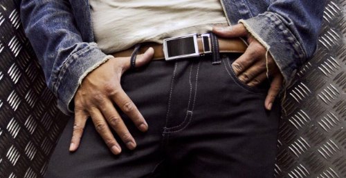 - Title : SlideBelts Men's Bar Striped Gunmetal Leather Belt - Custom Fit