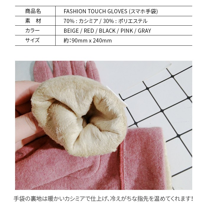| 商品名 | Fashion Touch Gloves スマホタッチパンネル対応レディース手袋 |