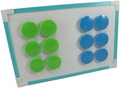 - THE SPECIFICS: 2 packs of 6 each colorful magnets (1.5" x 1.5") in neon green and blue. Dry erase board is for demonstration purposes only and not included.